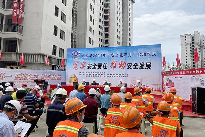 • 6月10日下午,巧家縣2021年“安全生產(chǎn)月”活動(dòng)啟動(dòng)儀式在巧家水韻金沙項(xiàng)目3#地塊隆重啟動(dòng)。巧家縣政府、巧家縣衛(wèi)健局、巧家縣人社局、巧家縣住建局、巧家縣應(yīng)急管理局及各建設(shè)、施工、監(jiān)理代表等參加活動(dòng)啟動(dòng)儀式。