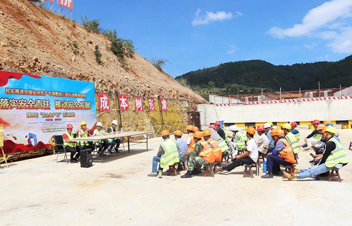 6月12日直管部安全總監(jiān)劉志偉根據(jù)公司審批的方案,在彌勒至玉溪高速公路勘察試驗段(象山段)項目部組織開展安全月啟動活動;參會主要人員有彌玉項目經(jīng)理繆志嚴,項目總工杜新洪,質(zhì)量總監(jiān)張書勇,項目全體管理人員及部分一線作業(yè)人員。