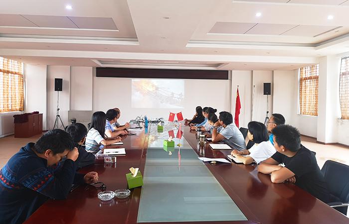 7月1日,路橋二部組織16名二線職工在直管部會議室觀看紅色電影《我的長征》。