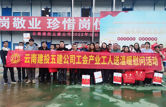 12月21日至22日,公司工會(huì)主席冷蕊前往鎮(zhèn)雄至果珠火車站至大灣公路工程項(xiàng)目三分部、鎮(zhèn)雄縣南部新區(qū)新型城鎮(zhèn)化綜合建設(shè)項(xiàng)目-三孔景觀橋項(xiàng)目、鎮(zhèn)雄縣2018年城鎮(zhèn)棚戶區(qū)改造項(xiàng)目、新城六盤水鳳凰臺(tái)項(xiàng)目和宣威市第二人民醫(yī)院遷建項(xiàng)目施工二標(biāo)段等五個(gè)在建項(xiàng)目開展公司2022年元旦、春節(jié)“送溫暖”慰問活動(dòng)。