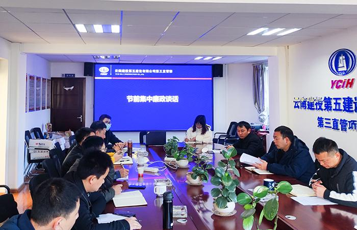 春節(jié)將至,為進一步嚴明各項紀律,營造節(jié)日期間風清氣正的氛圍,1月17日上午,第三直管項目部黨支部開展節(jié)前黨風廉政建設(shè)專題會,直管部在昆班子成員、項目負責人、科室負責人參加會議。
