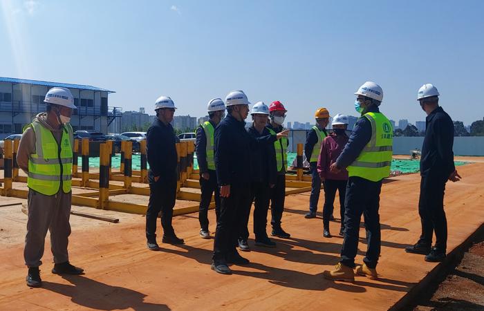 付雋蒼一行深入項目施工現(xiàn)場實地調(diào)研,了解項目施工動態(tài),聽取了直管部負責(zé)人及項目經(jīng)理對項目整體建設(shè)、生產(chǎn)進度、安全、質(zhì)量管控等情況的詳細匯報,實地考察了項目推進情況。