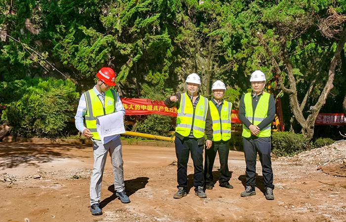 付雋蒼深入施工現場了解項目施工圖紙的設計進展、項目下游分包招標情況,以及實地踏勘現場管線改遷、土方開挖的推進狀況。
