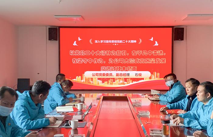石俊強(qiáng)調(diào),認(rèn)真學(xué)習(xí)宣傳貫徹黨的二十大精神,是當(dāng)前和今后一個(gè)時(shí)期的頭等大事和首要政治任務(wù)。一要用黨的二十大精神武裝頭腦,讓黨的二十大精神成為全體黨員干部干事創(chuàng)業(yè)的思想武器、力量源泉和精神支柱。二要用黨的二十大精神凝魂聚力,按照公司黨委要求,有重點(diǎn)、分步驟、多層次開展學(xué)習(xí)貫徹黨的二十大精神各項(xiàng)活動(dòng),迅速掀起學(xué)習(xí)貫徹工作熱潮,確保宣傳貫徹到黨員和干部職工心里。三要用黨的二十大精神推動(dòng)實(shí)現(xiàn)各項(xiàng)年度重點(diǎn)工作目標(biāo),科學(xué)謀劃新思路、新舉措、新方式,不折不扣貫徹落實(shí)好黨的二十大的“統(tǒng)籌發(fā)展和安全”的重要要求,以實(shí)干推動(dòng)年度目標(biāo)的實(shí)現(xiàn)。四要結(jié)合學(xué)習(xí)黨的二十大精神,緊緊圍繞事關(guān)項(xiàng)目一線生產(chǎn)、安全、技術(shù)、質(zhì)量等重難點(diǎn)問題,開展深入研究,統(tǒng)籌做好年關(guān)各項(xiàng)工作,確保取得實(shí)實(shí)在在的工作成效,以優(yōu)異的工作成績(jī)助推公司內(nèi)涵式高質(zhì)量發(fā)展。