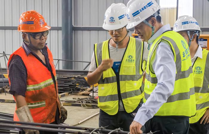 石俊一行通過實(shí)地查勘項(xiàng)目施工現(xiàn)場、座談等方式對(duì)項(xiàng)目生產(chǎn)推進(jìn)、安全質(zhì)量、文明施工、成本管控及存在的困難等情況進(jìn)行了逐一了解并提出要求。