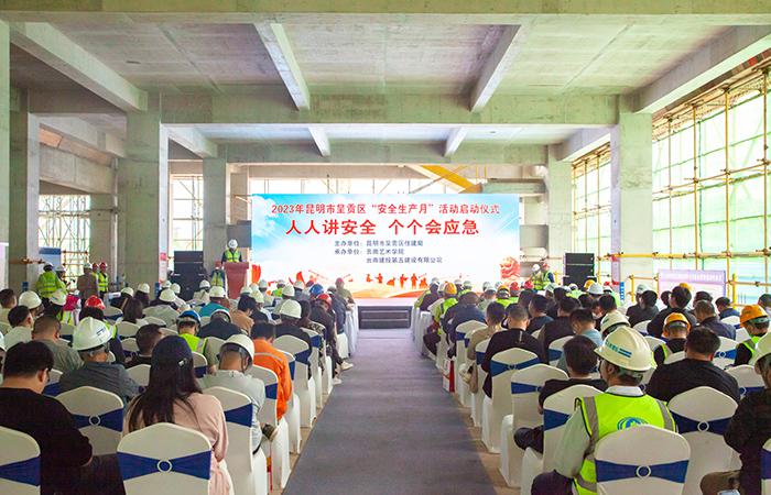 6月9日上午,呈貢區(qū)2023年“安全生產(chǎn)月”啟動儀式在公司第七直管項(xiàng)目部負(fù)責(zé)施工的云南藝術(shù)學(xué)院二期(一標(biāo)段)建設(shè)項(xiàng)目舉行,呈貢區(qū)住建局副局長張永明、應(yīng)急管理局副局長徐魯臣,云南藝術(shù)學(xué)院基建后勤處黨總支書記童汝全,公司副總經(jīng)理石俊出席啟動儀式并講話。