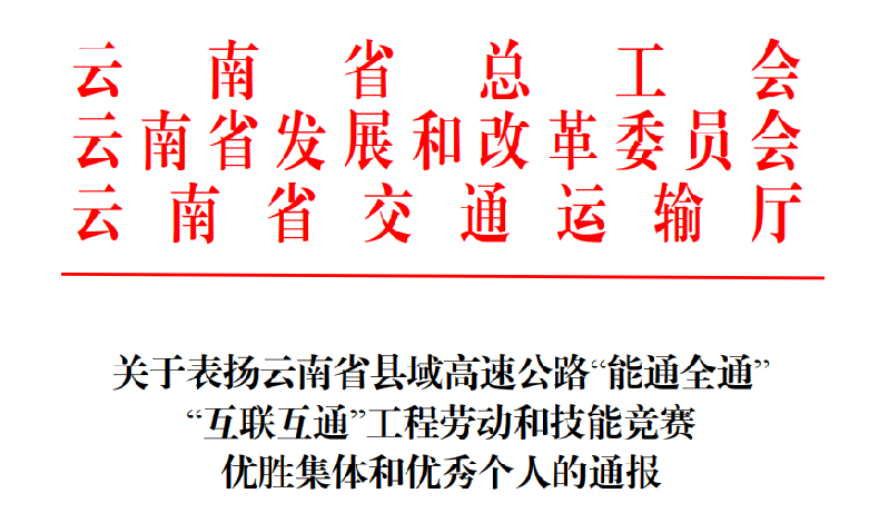 近日,云南省總工會(huì)、云南省發(fā)展和改革委員會(huì)、云南省交通運(yùn)輸廳聯(lián)合下發(fā)通報(bào),公布了云南省縣域高速公路“能通全通”“互聯(lián)互通”工程勞動(dòng)和技能競賽中優(yōu)勝集體、優(yōu)秀個(gè)人獲獎(jiǎng)名單。其中,公司路橋五部黨支部書記楊澤軍、賓鶴高速土建八工區(qū)項(xiàng)目經(jīng)理馬海周兩名干部職工獲評(píng)云南省縣域高速公路“能通全通”“互聯(lián)互通”工程勞動(dòng)和技能競賽“優(yōu)秀個(gè)人”榮譽(yù)稱號(hào)。