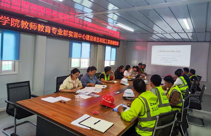 3月14日下午,第十直管項(xiàng)目部在文山學(xué)院教師教育專業(yè)群實(shí)訓(xùn)中心建設(shè)項(xiàng)目開展農(nóng)民工實(shí)名制管理實(shí)施細(xì)則交底工作,共計(jì)16人參加。