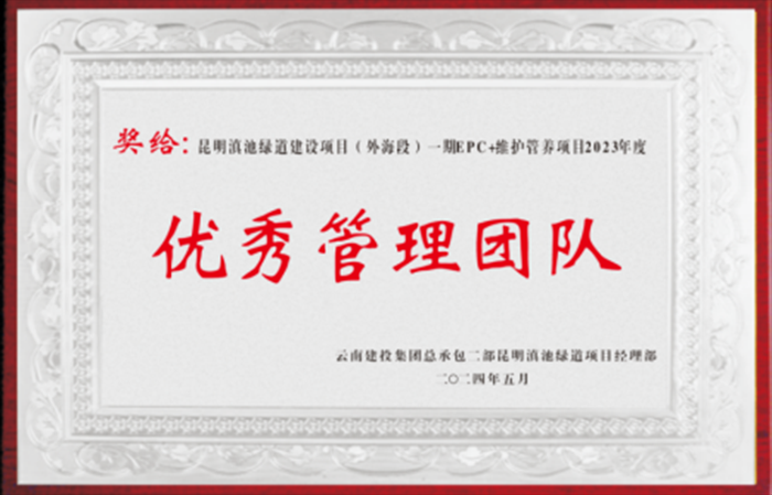 近日,昆明滇池綠道建設(shè)項目指揮部召開2023年度優(yōu)秀個人、優(yōu)秀團(tuán)體表彰會。昆明滇池綠道建設(shè)項目(外海段)一期EPC+維護(hù)管養(yǎng)土建七工區(qū)榮獲“優(yōu)秀管理團(tuán)隊”榮譽(yù),項目經(jīng)理謝國飛榮獲“優(yōu)秀項目經(jīng)理”稱號,項目資料員劉麗榮獲“優(yōu)秀個人”稱號。
