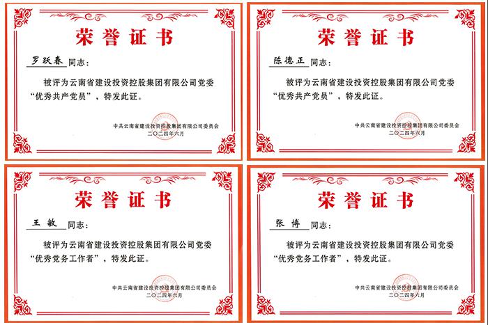 6月30日,云南建投集團(tuán)黨委召開(kāi)慶祝中國(guó)共產(chǎn)黨成立103周年暨“兩優(yōu)一先”表彰大會(huì)。公司2名共產(chǎn)黨員獲評(píng)“優(yōu)秀共產(chǎn)黨員”榮譽(yù)稱號(hào),2名黨務(wù)工作者獲評(píng)“優(yōu)秀黨務(wù)工作者”榮譽(yù)稱號(hào)。