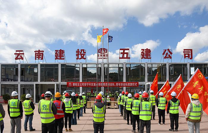 活動中,公司擴大班子成員、黨委工作部部長王敏宣讀“突擊隊”行動方案,參會領導為云南消防救援總隊綜合訓練基地——危險化學品事故預防與處置訓練中心及特勤消防救援站建設項目、云南技師學院教育強國工程實訓用房(G-3、G-4、G-5)建設項目“黨員突擊隊”“青年突擊隊”隊長授旗。
