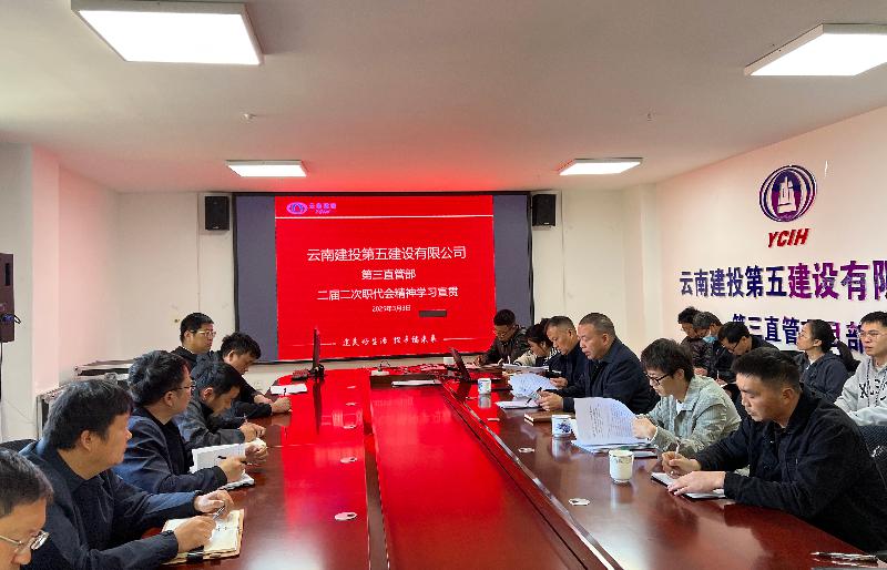 3月3日上午,第三直管部組織在昆班子成員和全體管理人員集中學(xué)習(xí)宣貫集團(tuán)和公司二屆二次職代會(huì)精神,共計(jì)27人參加。