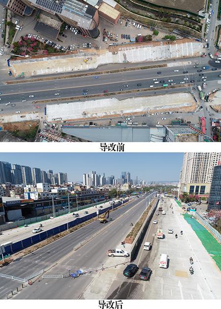 昆明市三環(huán)閉合工程?hào)|三環(huán)A段位于城市核心區(qū)域,施工路段為城市交通主干道,車流量大,周邊人口密集,施工期間道路保通任務(wù)艱巨。為確保交通導(dǎo)改順利實(shí)施,項(xiàng)目部科學(xué)規(guī)劃,精準(zhǔn)布局,將昌宏西路北段原雙向三車道分別向兩側(cè)平移,并通過(guò)新建永臨結(jié)合道路保障車輛通行。