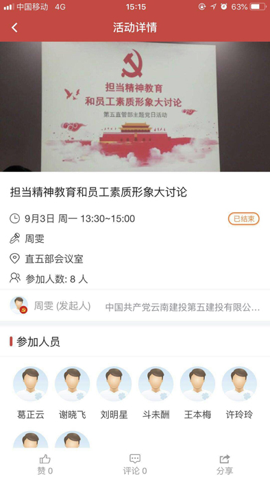 技術(shù)支持: 方森科技9月3日下午,直五部黨支部通過云嶺APP“互聯(lián)網(wǎng)+黨建”平臺開展主題黨日活動,開展“擔(dān)當(dāng)精神和員工素質(zhì)形象大討論”活動,22名黨員干部職工參加主題黨日活動。