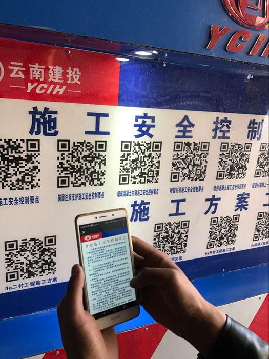 二維碼掃描平臺位于古那灣2號隧道進口端洞外的休息區(qū)及洞口人車分流區(qū)的人行道上,涵蓋施工安全控制要點、施工方案、作業(yè)指導書、安全技術交底、安全操作規(guī)程等施工工藝、規(guī)范和安全、技術、質量管理內(nèi)容。進入施工現(xiàn)場前如需查詢相關資料,可直接通過手機掃描二維碼進行查詢,操作非常方便。就算施工員不小心忘記了施工技術交底中的某個數(shù)據(jù),只要輕松掃一掃就能全部“收入囊中”,巧當施工現(xiàn)場的“教科書”。