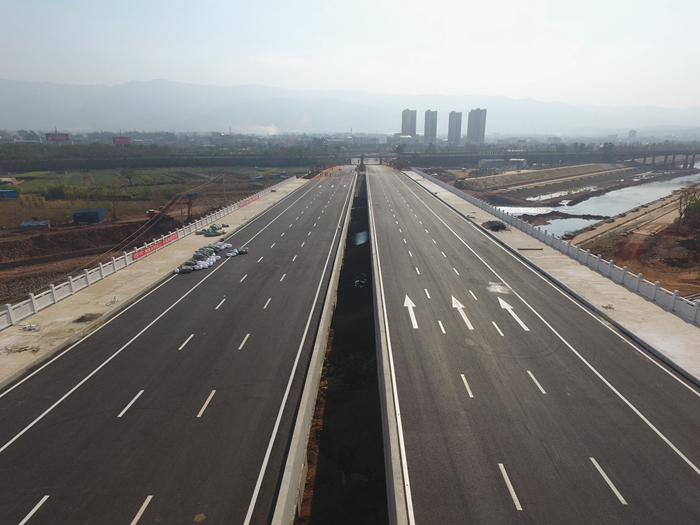 “兩路一橋”位于元謀縣城西部,是連接縣城與元謀西火車(chē)站、元謀古人類(lèi)歷史文化旅游項(xiàng)目的主要交通干線。其中,鳳凰大道是省道S227鳳儀村至京昆高速路收費(fèi)站公路項(xiàng)目,全長(zhǎng)1434.382米,設(shè)計(jì)速度40千米每小時(shí),為雙向六車(chē)道;濱江大道是城市主干路,全長(zhǎng)1940.242米,設(shè)計(jì)速度40千米每小時(shí),為雙向六車(chē)道??琮埓ń髽蝽?xiàng)目全橋總長(zhǎng)167.58米,分2幅,總寬度44米,現(xiàn)橋梁主體結(jié)構(gòu)施工已全部完成。