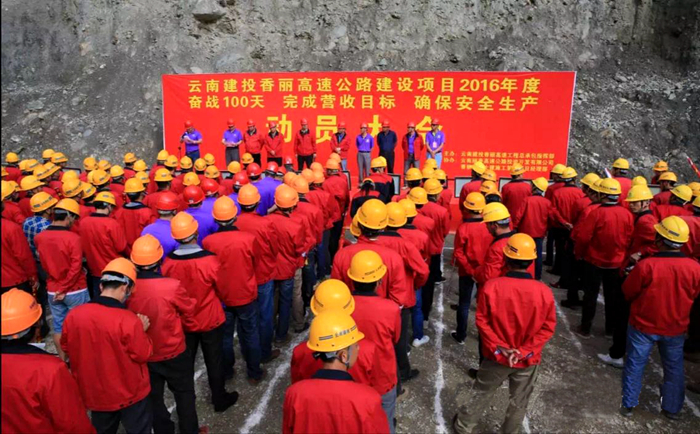 技術(shù)支持: 方森科技 9月28日,公司工會主席、副總經(jīng)理史呈森代表公司參加了香麗高速公路總承包指揮部在昌格洛隧道出口施工現(xiàn)場召開的“奮戰(zhàn)100天 完成營收目標 確保安全生產(chǎn)”動員大會。