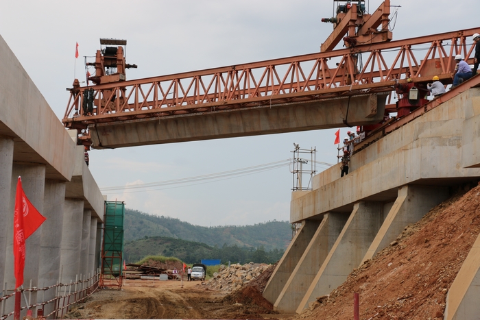 元謀跨龍川江大橋項目首片預(yù)制箱梁吊裝完成