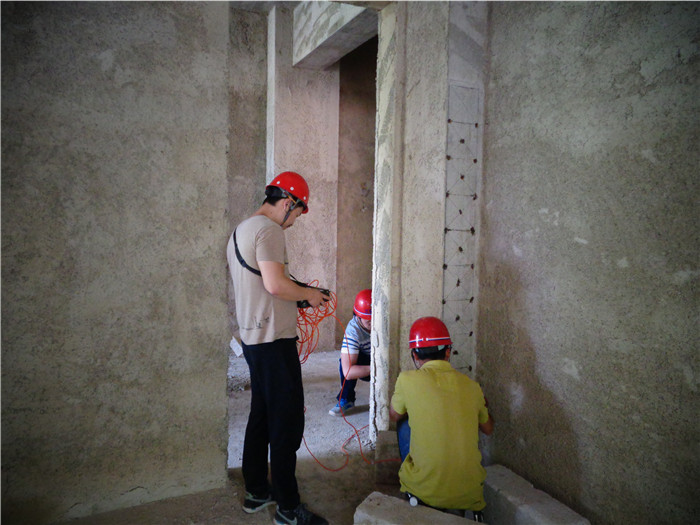 檢測主要通過對部分梁、柱、剪力墻混凝土?xí)r間強(qiáng)度、現(xiàn)澆梁的縱向力鋼筋保護(hù)層厚度、樓板厚度、樓層凈高項目進(jìn)行抽檢,確定影響工程主體結(jié)構(gòu)安全的重要項目和指標(biāo)是否符合設(shè)計和規(guī)范要求。大理州建設(shè)工程質(zhì)量檢測中心進(jìn)行了此次檢測。