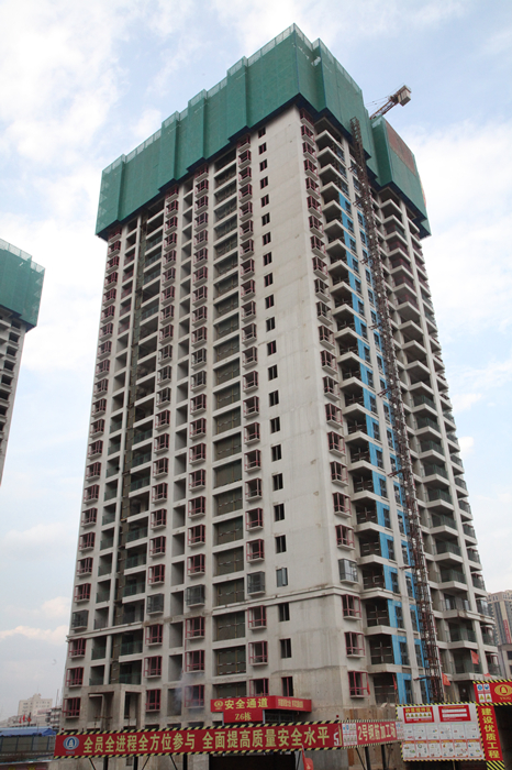官渡區(qū)五里中央商務區(qū)(CBD)A22地塊主體工程(一標段)位于昆明市民航路于菊苑路交叉口,于2015年1月8日進場施工,總建筑面積8萬平方米,地下室三層,地上兩棟,分別為Z5棟20層、Z6棟28層。該項目也是公司創(chuàng)品牌的重點項目,施工前期項目部從安全、質(zhì)量、成本、技術、文明施工等進行了全面的策劃,在施工過程中采用鋁模施工新工藝,并進行了優(yōu)化和改進,加強細部管理、質(zhì)量控制、窗框壓槽細化,最終達到混凝土接觸面不粉刷要求。此外,項目外墻膩子、外窗、欄桿隨主體結(jié)構同步向上施工,主體結(jié)構封頂后爬架采用空中解體方式拆除,在質(zhì)量進度成本方面均有較好的效果,在建設單位組織的季度考核中三次奪得桂冠。