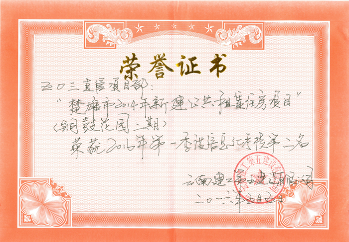 楚雄市2014年新建公共租賃住房項(xiàng)目(銅鼓花園二期)獲第二名
