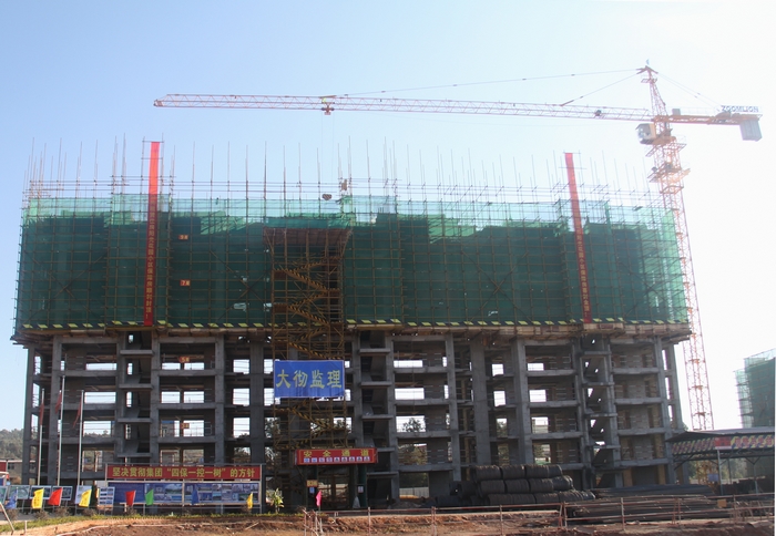 封頂?shù)腂1、B3棟主體為11層、全框剪結(jié)構(gòu),設(shè)計戶型為兩梯四戶三單元,建筑面積13000多平方米,9月開始基礎(chǔ)施工,歷時4個月順利封頂。