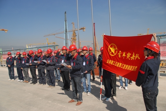 2012年11月23日,第三直管部玉溪公租房項(xiàng)目部青年突擊隊(duì)正式成立,公司黨委書記李興奎,黨委副書記、紀(jì)委書記吳倩等領(lǐng)導(dǎo)到項(xiàng)目部為青年突擊隊(duì)授旗,并要求要著力將這支青年突擊隊(duì)打造成為西南西北八省區(qū)建筑業(yè)中優(yōu)秀的青年突擊隊(duì)。