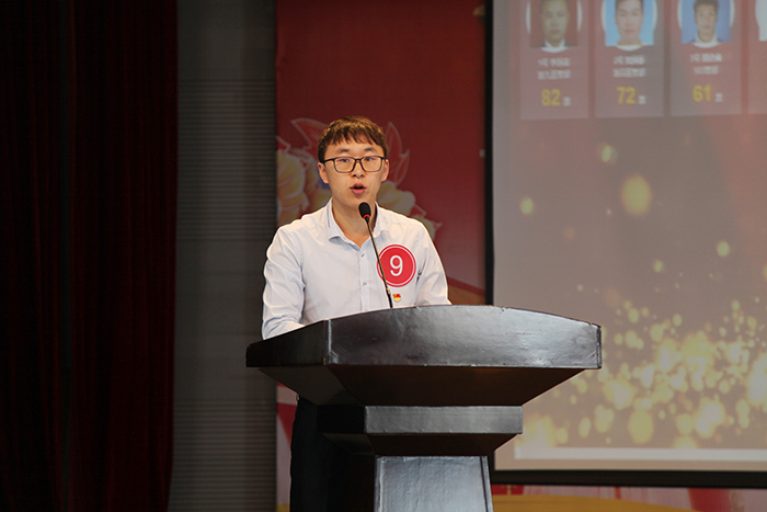 公開競(jìng)選中,選手們要在規(guī)定的4分鐘內(nèi)展示自己,贏得投票。選手們聲情并茂,用一句句樸實(shí)的話語(yǔ)展現(xiàn)了他們吃苦耐勞、堅(jiān)韌不拔的精神面貌,激勵(lì)了在場(chǎng)的每一位青年職工樹立目標(biāo)、懷抱夢(mèng)想、勇于拼搏。9號(hào)選手楊揚(yáng)講述了他進(jìn)駐宣威得祿鄉(xiāng)兩年的扶貧故事,一張張入戶走訪、幫老鄉(xiāng)賣農(nóng)產(chǎn)品的照片深深打動(dòng)了在場(chǎng)觀眾。
