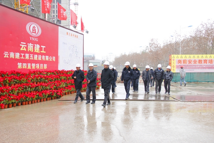 2013年1月10日上午8:30分,云南省安全生產(chǎn)委員會(huì)專家組成員一行四人到第四直管部文化空間項(xiàng)目視察指導(dǎo)工作。集團(tuán)安全總監(jiān)段益慶及相關(guān)部門人員,公司總工程師焦倫杰、安全總監(jiān)劉路明等陪同視察。