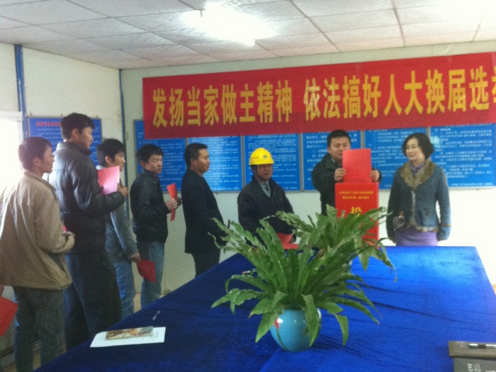 為了保證遠(yuǎn)在工地一線的職工們也能行使自己的權(quán)利,順利投出選票,直管部在各個工地都設(shè)置了流動票箱,讓無法到主會場參加選舉的職工們將選票投到流動票箱。
