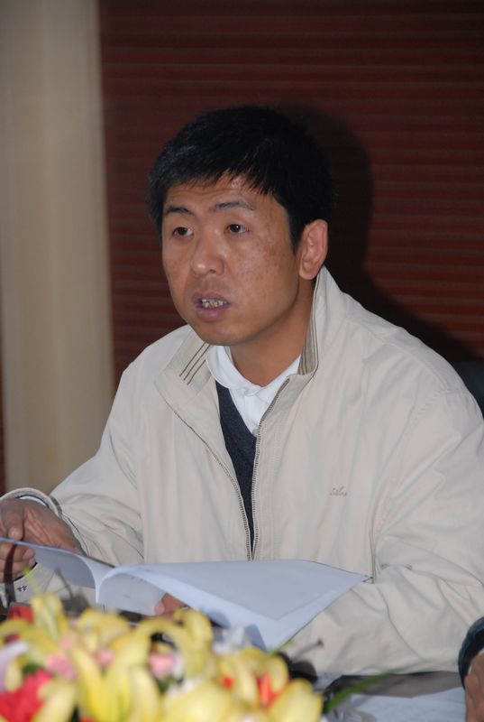 圖為公司經(jīng)營(yíng)部副部長(zhǎng)張棟梁在會(huì)上通報(bào)各單位2011年的經(jīng)營(yíng)狀況