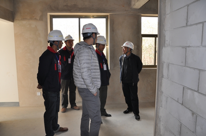 在公司總經(jīng)理助理、第三直管部經(jīng)理王文斌和項目執(zhí)行副經(jīng)理何斌陪同下,李文智先后參觀了項目部辦公室、會議室及食堂,并重點參觀了項目部的過程工序樣板房,檢查了施工現(xiàn)場及文明施工建設(shè)的情況。
