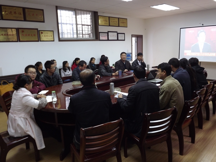 五〇七直管部組織31名職工在直管部會議室觀看了開幕式
