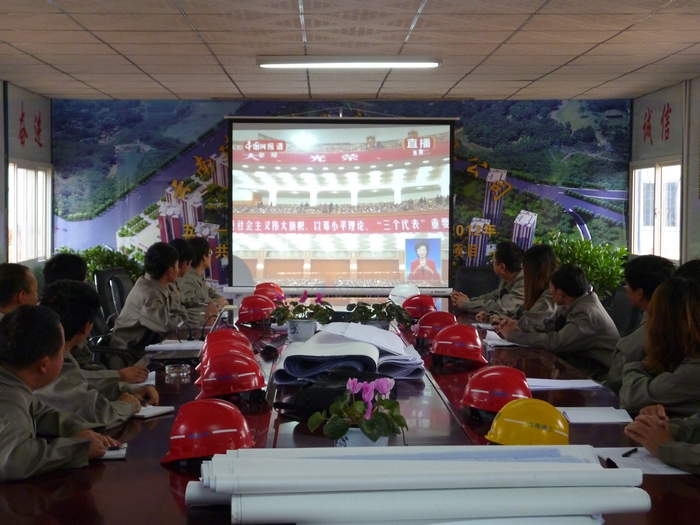 第二直管部舒鉑廣場項(xiàng)目部20名職工收看十八大開幕式