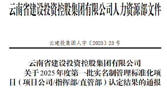 公司4個項(xiàng)目成功通過集團(tuán)2025年度第一批建筑工人實(shí)名制管理標(biāo)準(zhǔn)化項(xiàng)目認(rèn)定