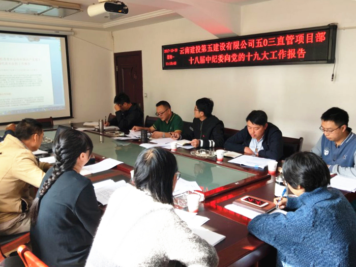 11月3日上午,五〇八直管部到曲靖鳳棲雅苑項(xiàng)目部組織學(xué)習(xí)十九大精神,共14名職工參加了學(xué)習(xí)。 此次學(xué)習(xí)的內(nèi)容包括十九大報(bào)告原文及集團(tuán)學(xué)習(xí)中國共產(chǎn)黨第十九次代表大會6次簡報(bào)。會上,直管部黨支部書記與項(xiàng)目部職工一起謀劃新時(shí)代如何立足本職崗位,激發(fā)新作為。 直管部要求:干部群眾要持續(xù)保持對十...