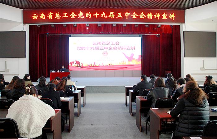 12月18日下午,云南省總工會在公司宣講黨的十九屆五中全會精神及習(xí)近平總書記在全國勞動模范和先進(jìn)工作者表彰大會上的重要講話精神。集團(tuán)工會副主席趙艷波主持宣講活動,公司工會主席冷蕊,機(jī)關(guān)各職能部門代表及各直管部、實(shí)體工會主席帶隊(duì)共96人參加宣講。活動邀請了云南省工青婦干部學(xué)校社會學(xué)副教授、黨政辦公室副主任劉瑞華老師為公司做黨的十九屆五中全會精神專題輔導(dǎo)和宣講,還邀請了全國勞模李永山、云南省勞模魏東作…