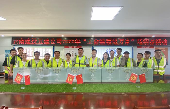 7月21日-7月24日,第九直管項目部陸續(xù)在麗江華坪農(nóng)村供水保障專項行動項目、五華區(qū)右營村新建中學項目開展2023年“工會進萬家”送清涼活動,切實為炎炎夏日里的一線職工送上一份清涼與關(guān)懷。直管部工會宣貫了習近平總書記關(guān)于工人階級和工會工作的重要論述,向職工群眾宣傳高溫期間勞動保護及防暑降溫相關(guān)知識的宣傳,并向一線職工發(fā)放了24份洗護五件套慰問品。炎炎夏日送清涼,滴滴關(guān)懷沁人心。此次送清涼活動切實?!?