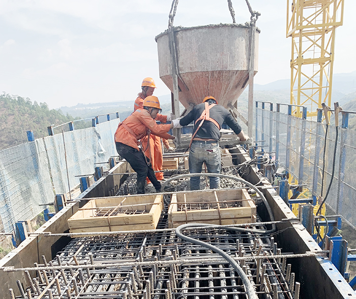 玉屏村4號大橋左幅3號墩蓋梁順利澆筑完成