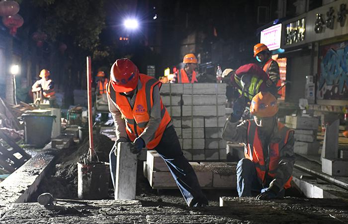 11月15日晚,翠湖西岸,倉園巷內,一片燈火通明。工人搬運石材、拌合灰漿、鋪設地磚,來來往往,項目建設熱火朝天。這里是公司路橋二部五華區(qū)2023年老舊小區(qū)及周邊配套基礎設施提升改造項目倉園巷段。為了確保翠湖環(huán)路雨污分流施工期間倉園巷道路正常通行,項目部挑燈夜戰(zhàn)搶進度,連續(xù)多個夜晚加班加點,成功搶通倉園巷道路石材鋪裝工作面。倉園巷車行道使用長60厘米,寬30厘米,高15厘米的攢路面鋪地石,單塊重達7…