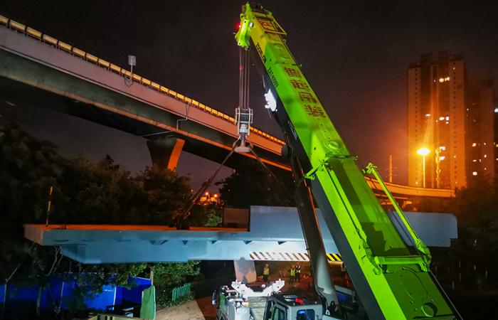 5月25日凌晨六點,在路橋一部負責(zé)施工的昆明市綜合交通國際樞紐建設(shè)項目附屬工程菊華立交二環(huán)匝道工程施工現(xiàn)場,最后一跨鋼箱梁順利吊裝就位,這也標(biāo)志著項目橋梁主體工程已經(jīng)全部完成,進入了交工通車的全面沖刺階段。本跨鋼箱梁總長度18米,總重量60噸,上跨菊華立交底層環(huán)島主要交通道路,上部凈空受限,吊臂活動空間狹窄,下部人流車流密集,吊裝過程中需要對周邊交通進行疏解。為了保障菊華立交吊裝施工安全,項目部積…