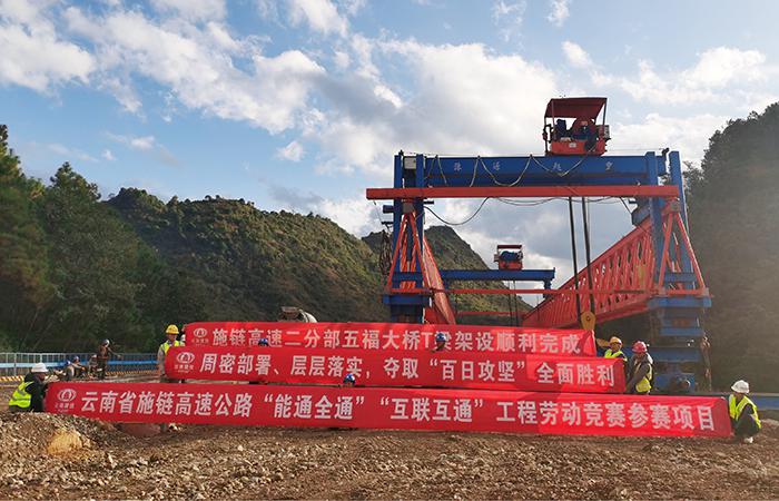 百日攻堅|施鏈高速二分部五福大橋T梁架設(shè)完成