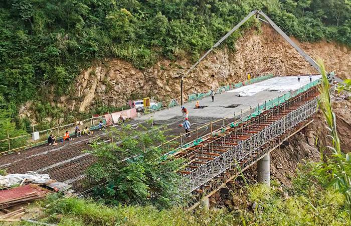 元綠二分部太平寨2號大橋現(xiàn)澆箱梁澆筑完成