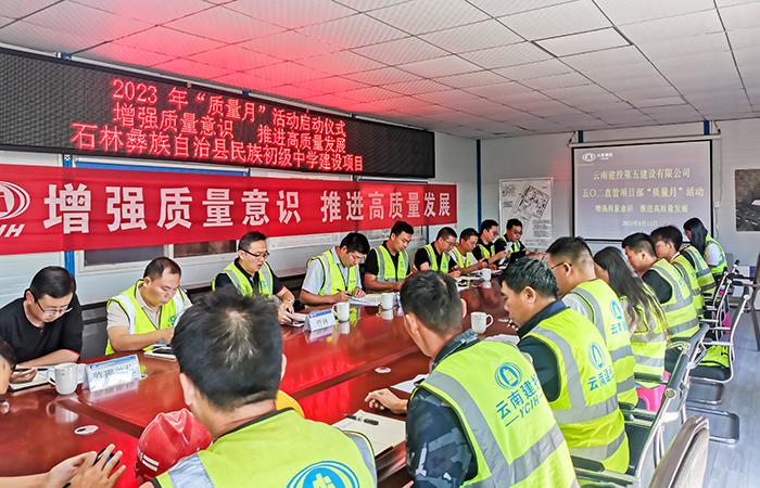 9月13日上午,五〇二直管項目部在石林彝族自治縣民族初級中學(xué)建設(shè)項目組織召開了以“增強質(zhì)量意識 推進高質(zhì)量發(fā)展”為主題的2023年“質(zhì)量月”活動啟動會,直管部班子成員及各科室負(fù)責(zé)人、建設(shè)單位代表、監(jiān)理單位代表出席此次啟動大會。會議要求,一是要充分認(rèn)識“質(zhì)量月”活動的重要意義,充分運用責(zé)任體系建立、質(zhì)量風(fēng)險分析等質(zhì)量管理手段,全面構(gòu)建質(zhì)量管理體系和高效運行機制,切實提高在建項目人員質(zhì)量管理素質(zhì),提升…